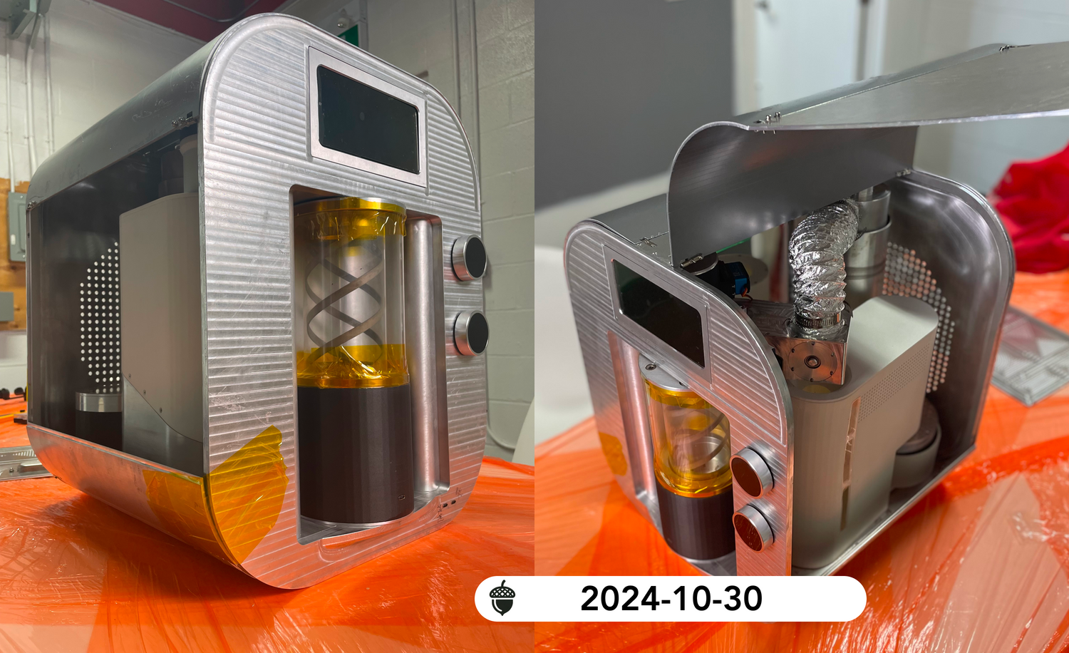 The latest updates include transitioning critical components of the M1 roasting section from initial 3D printed materials to robust, precision-engineered aluminum and steel.