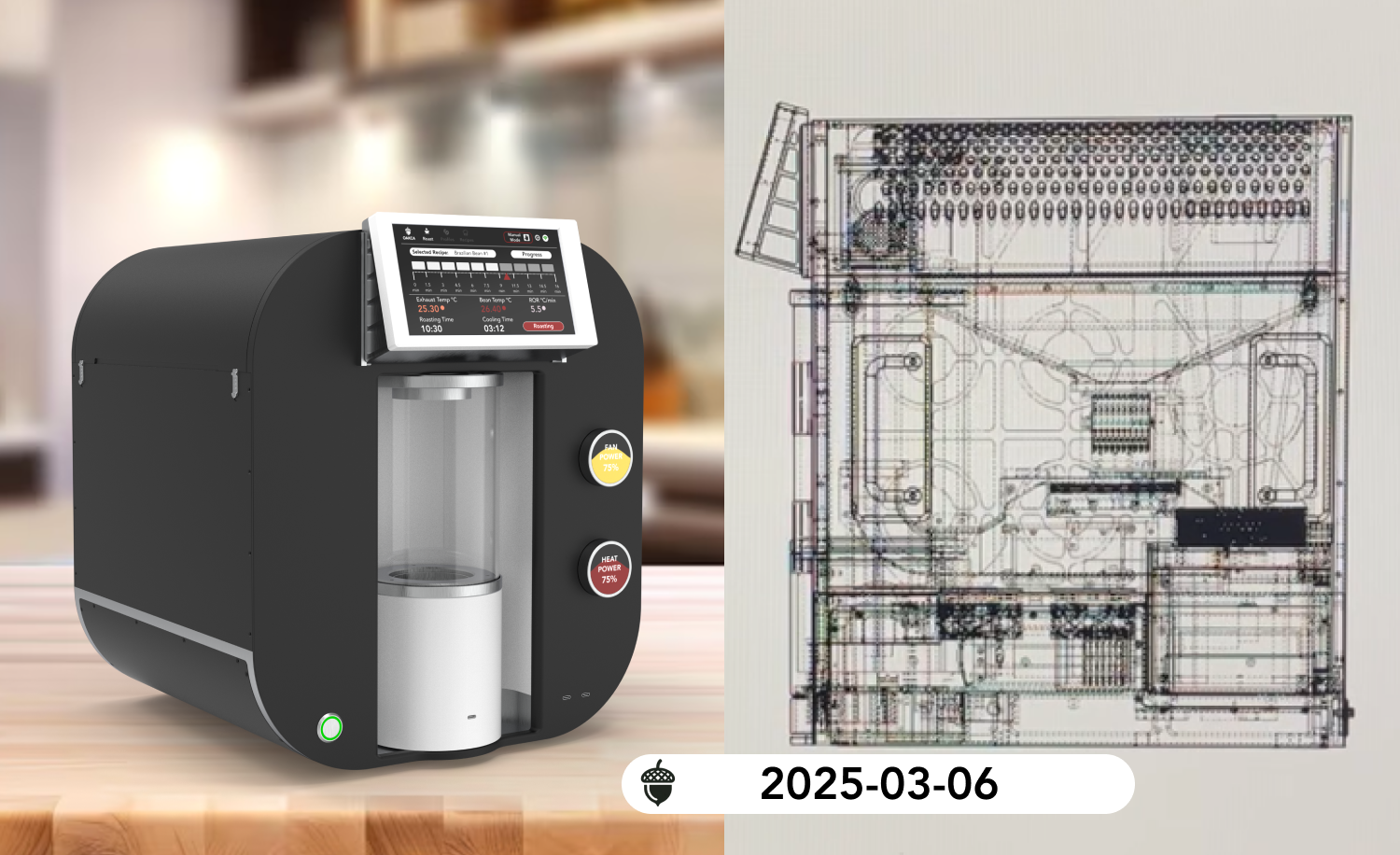 These refinements are designed to ensure a smoother, more intuitive roasting experience while maintaining the durability and precision expected from OAKCA. As we move forward with production, we’ll continue fine-tuning every aspect to deliver a machine that meets the highest standards of performance and usability.