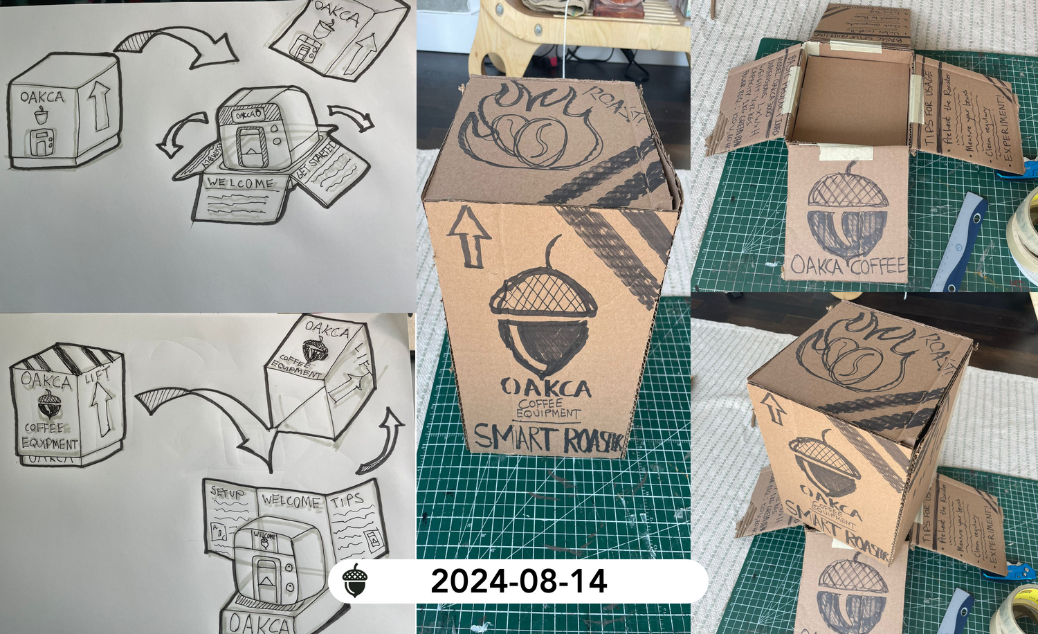 In a creative exploration of form and function, we've initiated the prototyping phase for our innovative packaging design, aiming to reflect the sophistication and uniqueness of our OAKCA smart roasters.